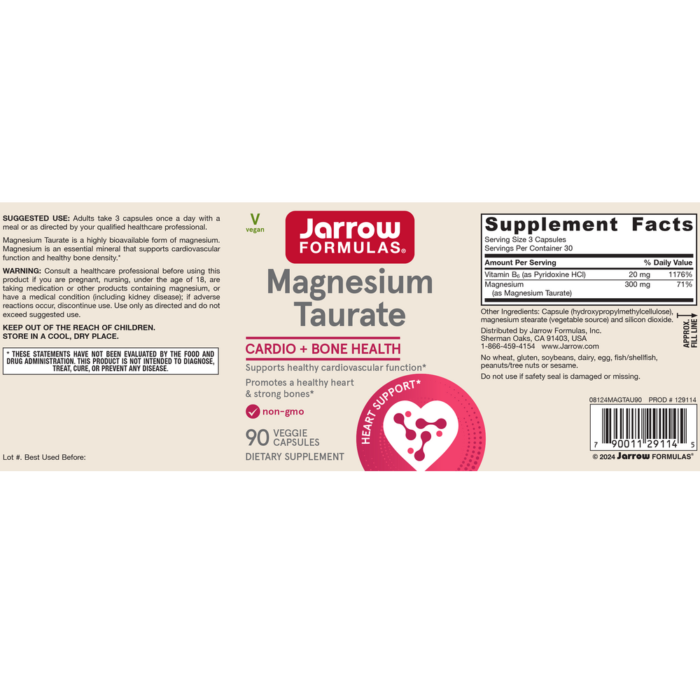 Magnesium Taurate is a highly bioavailable form of magnesium. Magnesium is an essential mineral that supports cardiovascular function and healthy bone density.*