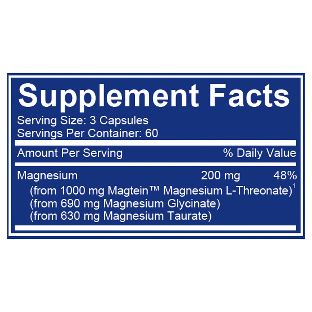 MagTein has been shown to help raise the brain’s magnesium levels, which is associated with memory and cognitive function support.*