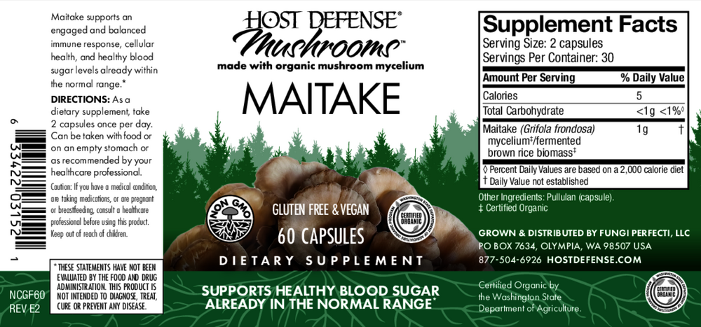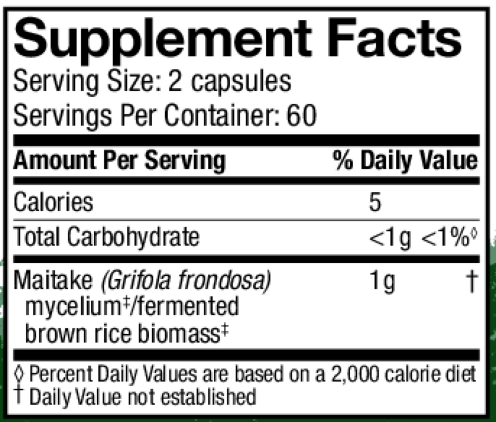 • Supports cellular health*Found growing in temperate hardwood forests, Maitake (Grifola frondosa) has been the subject of studies worldwide and is known for supporting normal cell growth.* Rich in 1,3, 1,4 and 1,6 beta-D glucans, Maitake is a delicious, edible species, with a long history of traditional use.