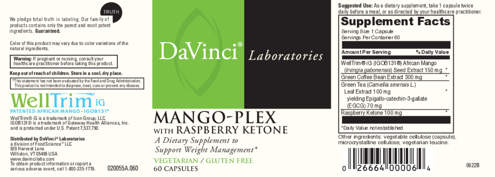 Mango-Plex with Raspberry Ketone is a vegetarian, dietary supplement that supports weight management.* Mango-Plex with Raspberry Ketone combines 4 scientifically tested and clinically studied ingredients (Mango Seed Extract, Raspberry Ketone, Green Coffee Bean Extract and Green Tea Extract) that work synergistically to help break through healthy weight management barriers.*