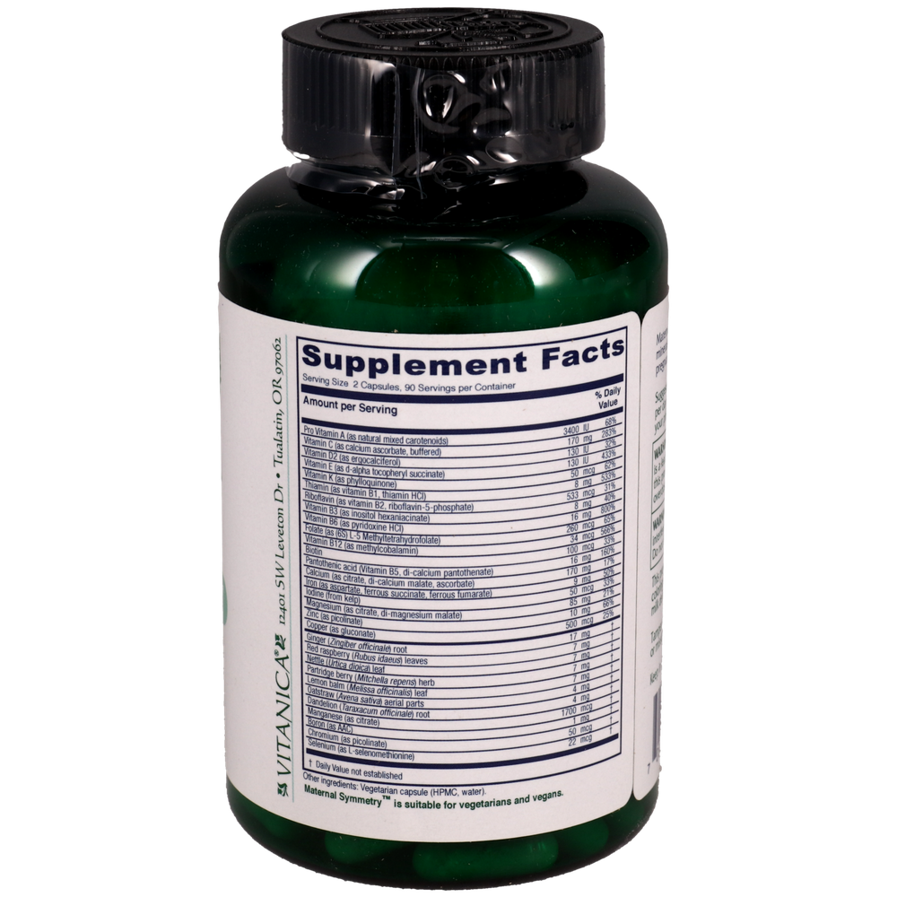 Vitanica's high quality, high potency multivitamin and mineral supplement formulated for pregnancy support – before, during and after childbirth. As always, hypoallergenic and preservative-free.*