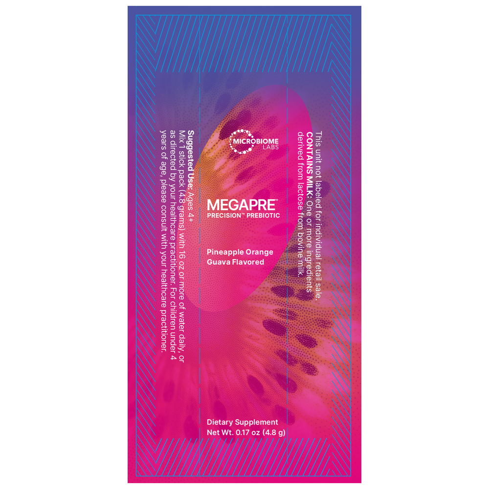 MegaPre™ is a cutting-edge Precision Prebiotic™ supplement made up of clinically-tested, non-digestible oligosaccharides that can help increase microbial diversity and selectively feed beneficial, keystone bacteria like Akkermansia muciniphila, Faecalibacterium prausnitzii, and Bifidobacteria.