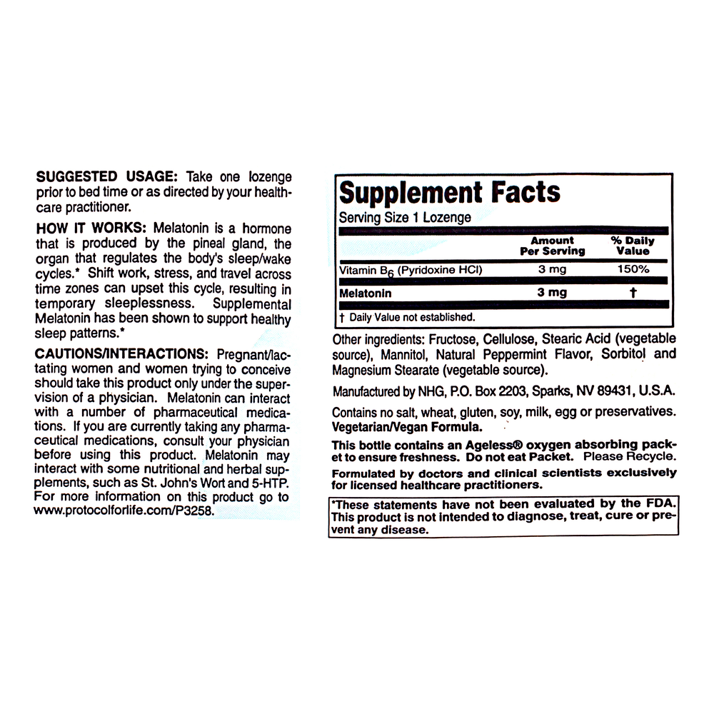 Melatonin is a potent free radical scavenger naturally produced in the pineal gland.* It is involved in many of the regulatory processes of the body, including regulation of glandular secretory functions related to the maintenance of normal sleep/wake cycles and aspects of immune system function.* Supplemental Melatonin has been shown to support healthy sleep patterns especially when traveling across time zones or for shift workers.*
