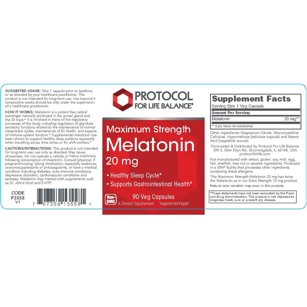Melatonin is a potent free radical scavenger naturally produced in the pineal gland and the GI tract.* It is involved in many of the regulatory processes of the body, including regulation of glandular secretory functions related to the maintenance of normal sleep/wake cycles, maintenance of GI health, and aspects of immune system function.* Supplemental Melatonin has been shown to support healthy sleep patterns especially when travelling across time zones or for shift workers.* This Extra Strength Melatonin 10 mg has over three times the Melatonin as in our 3 mg product.