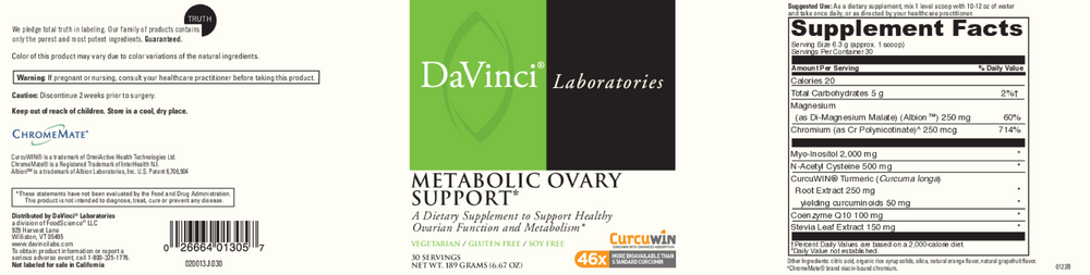 Metabolic Ovary Support* is a dietary supplement that supports ovarian health,* insulin function,* lipid metabolism* and antioxidant levels.* Ovarian health is more of a focus than ever and the need for a complete formula is greater than ever. This comprehensive formula features the most notable nutritional ingredients to support the structure and physiology associated with the ovaries, metabolism (both glucose and lipid) as well as supporting healthy magnesium levels. This great tasting powder represents the gold standard in foundational ovary support.*