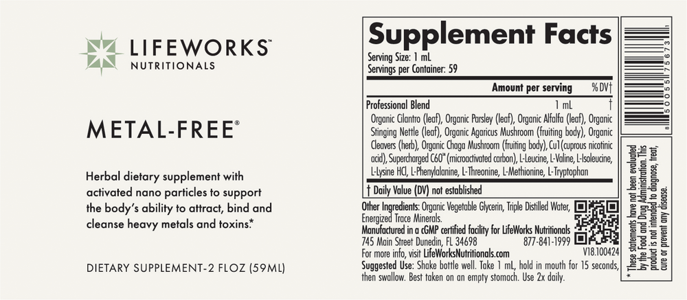 Metal Free is a very exact formula containing some of the most potent organic herbal detoxifiers there are, as well as a super-charged form of carbon known as Fullerene. This micro-activated, multi-layered, and highly organized carbon molecule is so effective that it is able to safely enter the cells themselves, attracting harmful toxins to it, and acting as a sponge to absorb and remove them from our body, and with no known side-effects.* Metal-Free enhanced with Essential Amino.