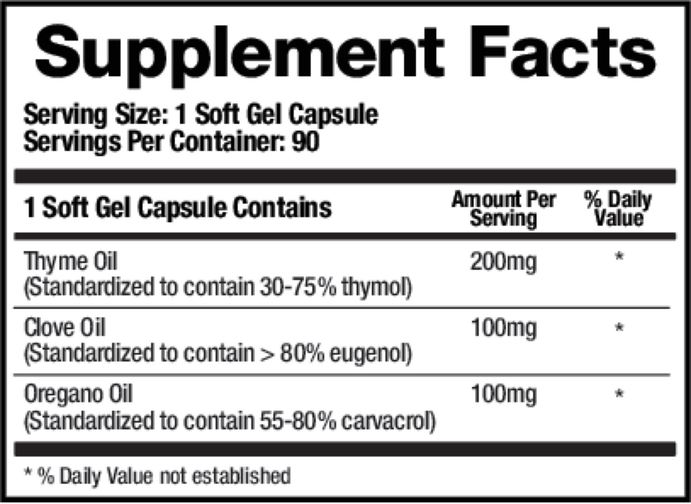 Microb-Defend is a soft gel that contains the essential oils of oregano, thyme and clove. Essential oils, including those from carvacrol, thymol and eugenol have been used throughout history for their diverse health benefits.