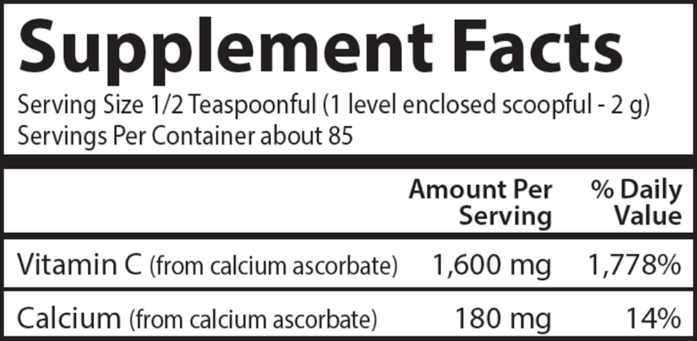 • 1,600 mg of vitamin C per 1/2 teaspoon