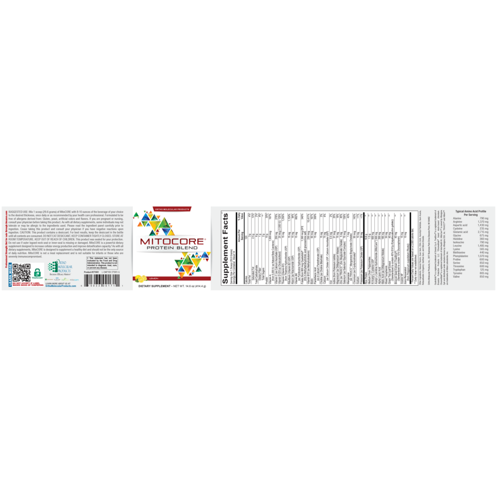 MitoCORE Protein Blend is a scientifically formulated blend of nutrients and protein, specifically designed to support cellular energy production, antioxidant protection, detoxification capacity, and immune function.*