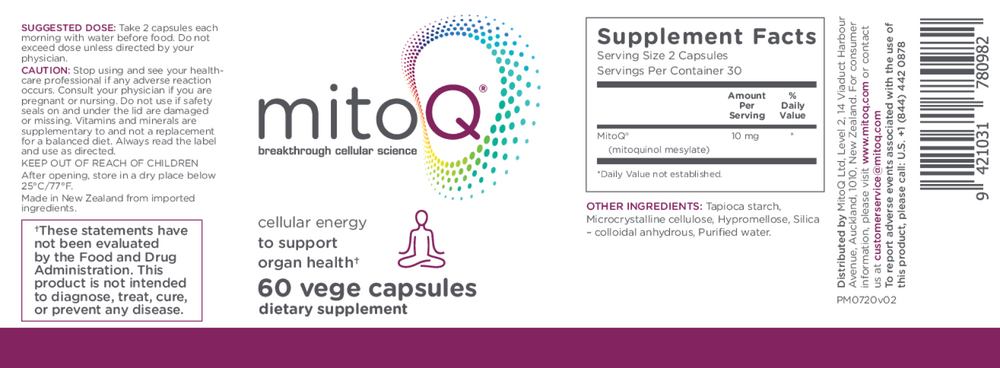 MitoQ® 5 mg delivers targeted CoQ10 antioxidant support to your mitochondria, the power plants of your cells, to help your organs perform at their best.*