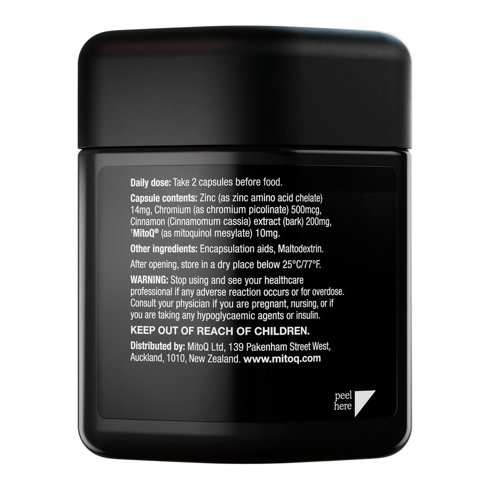 Targeted at supporting already optimal blood sugar balance by partnering the breakthrough cellular science of MitoQ® with premium, research-backed ingredients.*