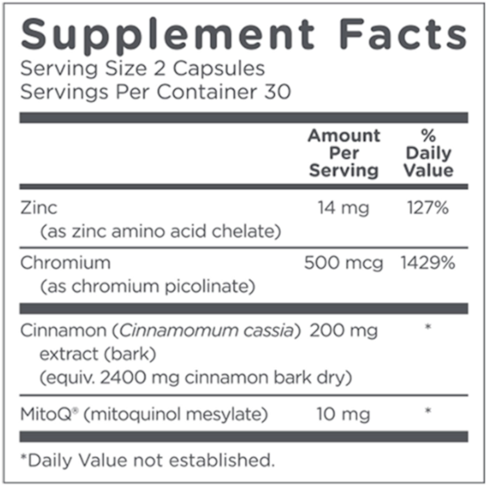 MitoQ Blood Sugar also contains Cinnamon which recent studies suggest can support glucose metabolism, and blood sugar and cholesterol levels already in the normal range.*