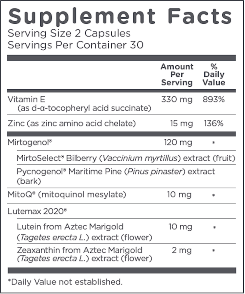 MitoQ® combines the breakthrough cellular science of MitoQ and other premium, research-backed ingredients, to provide optimal eye health.* MitoQ Eye contains Pycnogenol®, MirtoSelect®, Lutemax 2020® (naturally derived marigold flower extract), and Zinc.