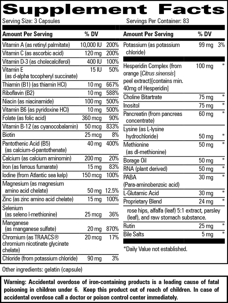 Proprietary Blend (consisting of rose hips, alfalfa (leaf) 5:1 extract, parsley (leaf), and raw stomach substance) ... 24 mg