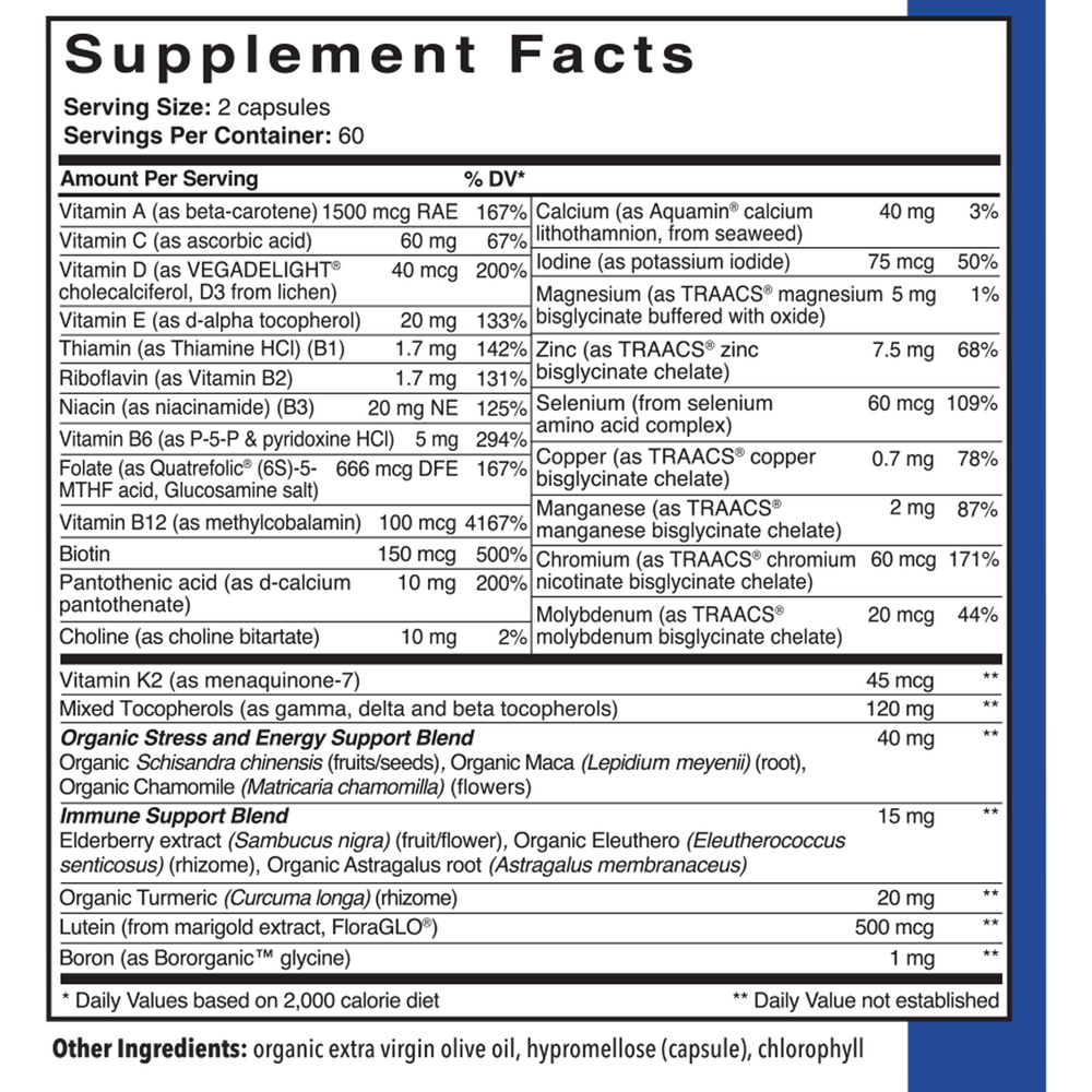 Patient One Multi Essentials Plus supplies a broad spectrum of vitamins, minerals and other nutrients as fundamental support for overall health and well-being. Our formula is enhanced with nutrients that provide antioxidant protection and support for cellular health, along with botanical blends for additional stress, energy and immune support*.