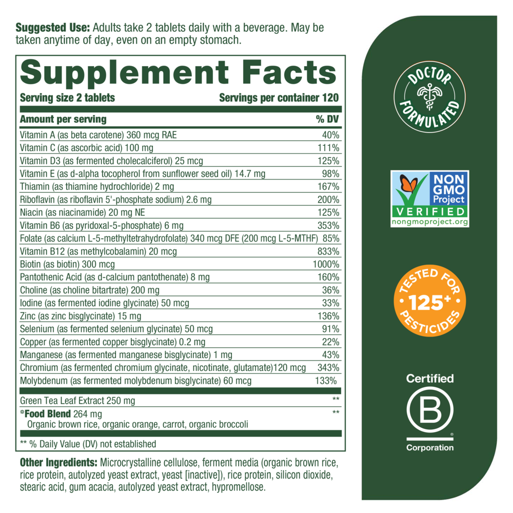 MegaFood® Multi for Women 55+ is formulated by award-winning integrative medical physician, Tieraona Low Dog, M.D., specifically for women over the age of 55 who seek optimal health and wellbeing.* Megafood's tablets can be taken any time throughout the day, and are crafted with a blend of vitamins, minerals, and green tea leaf extract that support a woman’s unique physiological needs*. It includes 1000 IU (25 mcg) of vitamin D to support healthy bones, * B vitamins and zinc to support cognitive function,* and FoodState® B vitamins, including methylated folate and B12, for healthy energy.* (Please note: this formula is made without calcium, magnesium, iron and vitamin K. Megafood recommend consulting with your healthcare practitioner to determine whether you should also supplement with a bone-supporting product, like MegaFood® Bone Health.)