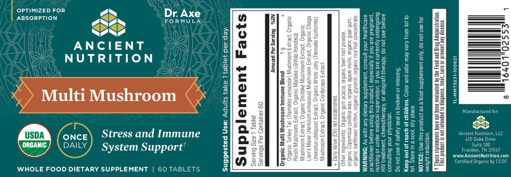 By themselves, certain beneficial mushrooms have amazing compounds to support overall health. When combined, those compounds can provide additional support! That’s why there are several beneficial mushrooms in Ancient Mushrooms. In fact, the combination of compounds in mushrooms can generally support a healthy immune system, can support exercise performance, can support healthy cognitive function and more.†Features:• Multi Mushroom immune blend including Turkey Tail, Lion’s Mane, Snow Jelly, and more!