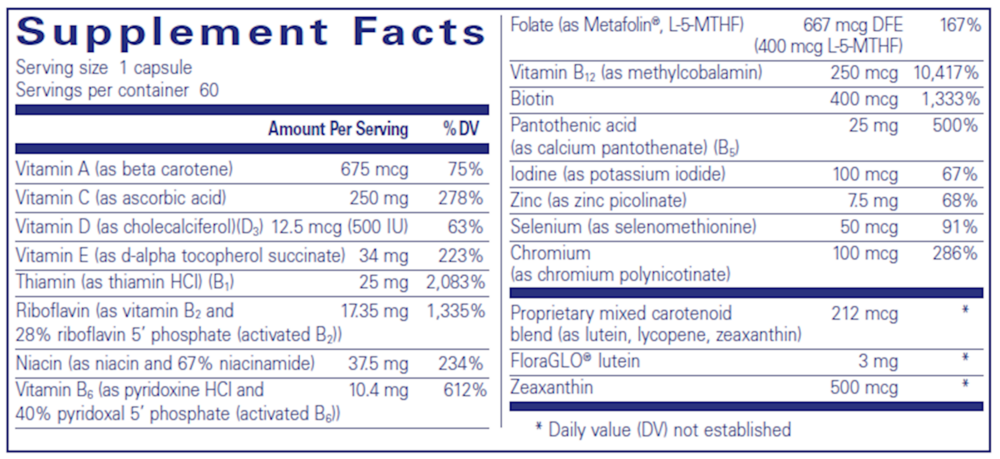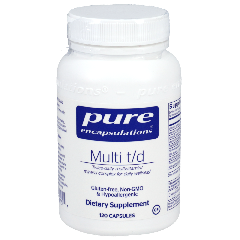 Multi t/d is a two-per-day multivitamin/mineral formula providing a concentrated core of nutrient essentials. Enhanced with lutein and zeaxanthin, this formula couples fundamental support with convenience. Furthermore, Multi t/d provides chelated minerals and active vitamin cofactors found in Nutrient 950® and UltraNutrient® for optimal bioavailability and utilization.*