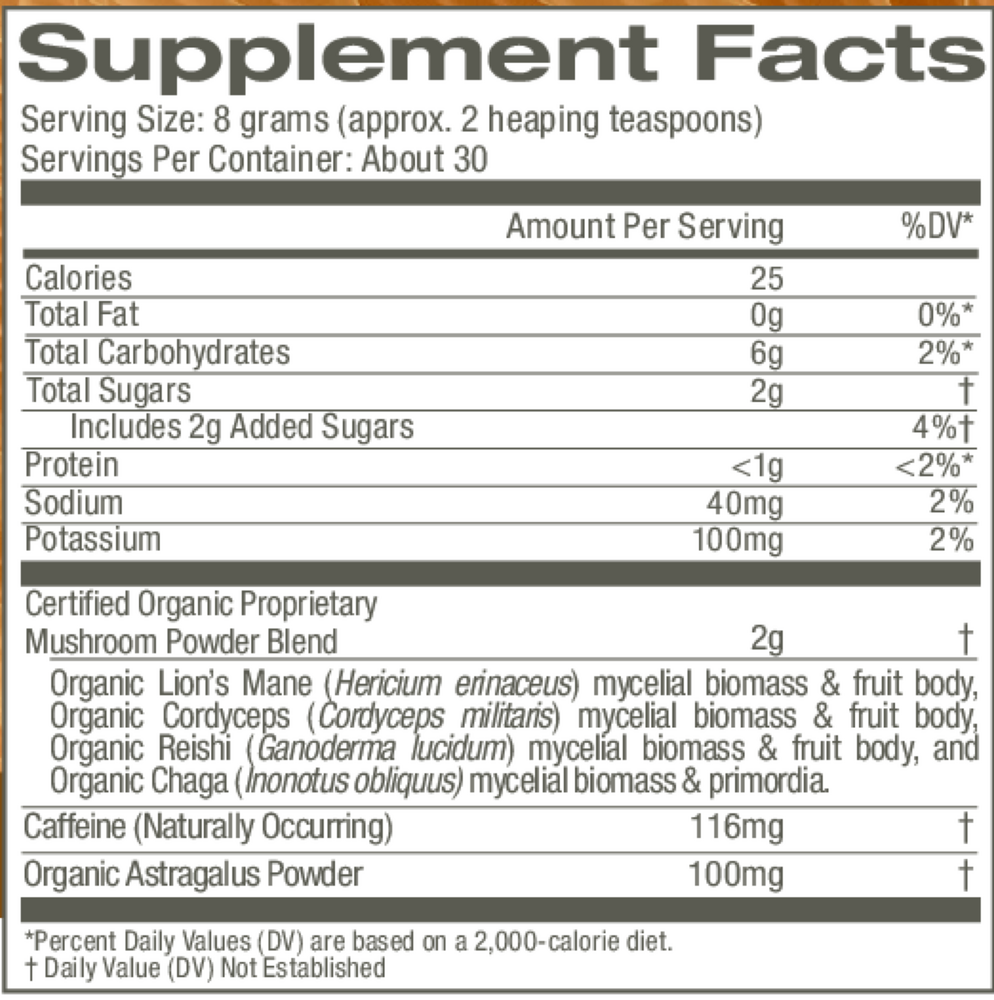 Each serving of Om Mushroom Coffee Latte Blend contains