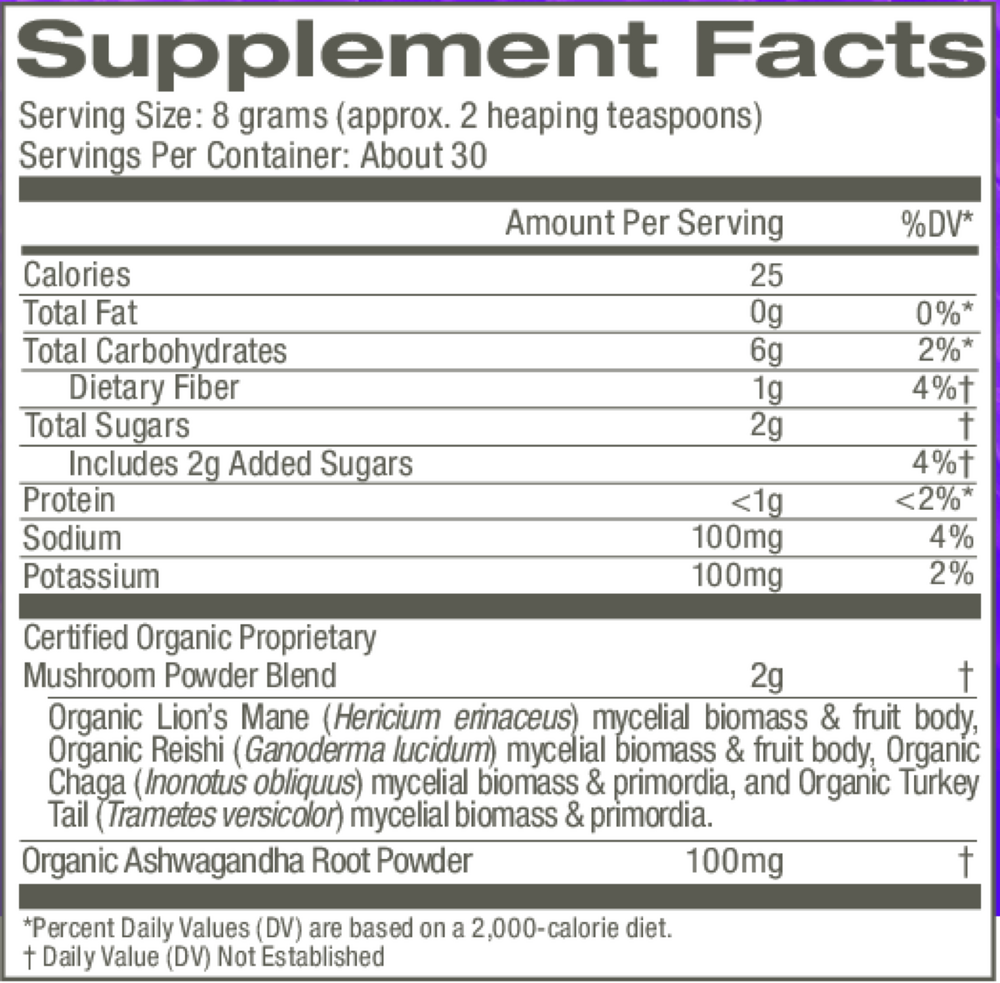 Each serving of Om Mushroom Hot Chocolate Blend contains