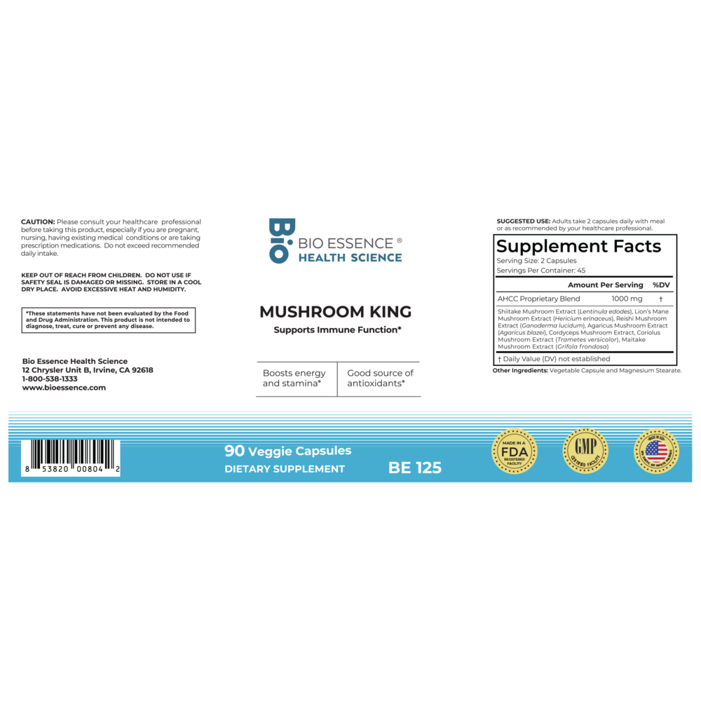 Mushroom King brings together six of the most powerful antioxidant mycelial extracts – reishi, maitake, shiitake, agaricus, coriolus, and cordyceps. Combined in one supplement, they enhance cytokine levels for better cellular function; while the amino acids support liver, brain, and immune system function to promote good health.*