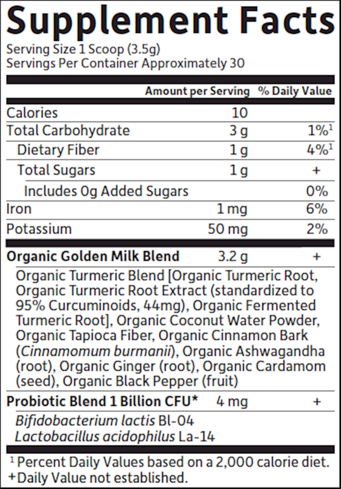 Perfect for bedtime recovery and nourishment,* delicious Golden Milk has been used for centuries in Ayurvedic tradition. Garden of Life have added organic coconut water to support hydration, a powerful blend of organic ginger, black pepper, and Ashwagandha together with organic fermented whole turmeric root and 44mg of curcumin—the key bioactive compound found in turmeric.