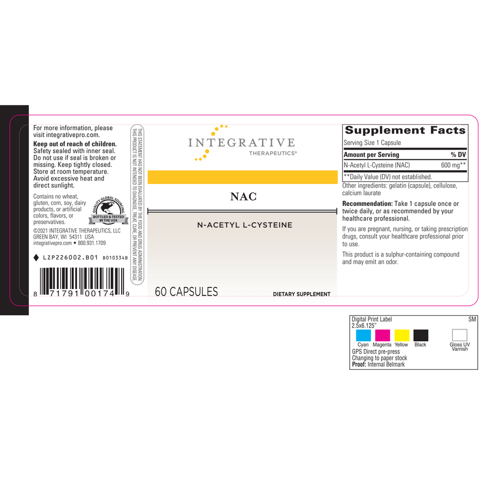 N-Acetyl L-Cysteine (NAC) helps to replenish intracellular glutathione, which is vital in cellular antioxidant pathways.* NAC has a low molecular weight and is well absorbed via oral administration.