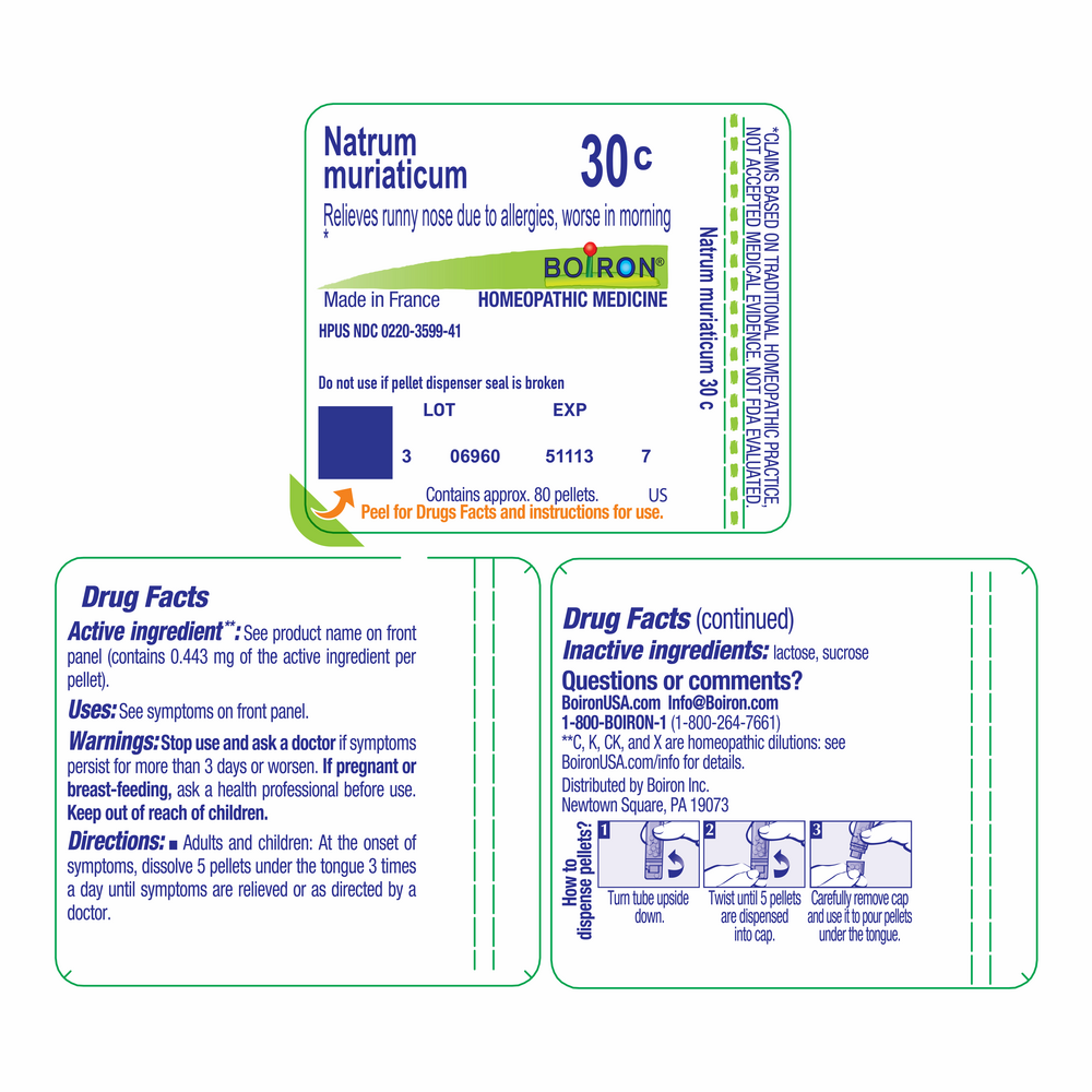 Customize your care with Boiron single medicines for highly targeted relief. Natrum Muriaticum 30C is a homeopathic medicine that relieves runny nose due to allergies, worse in morning.*The pellets melt in your mouth and can be taken on the go, no food or water needed. They come in an easy dispensing tube of approx. 80 pellets (16 doses). Boiron single medicines are ideal for adults and children and do not contain artificial colors, flavors, sweeteners, or preservatives. Always use according to the label instructions unless directed by your health care professional.With more than 90 years of expertise, Boiron is a trusted brand that prides itself on quality manufacturing and responsible environmental practices. All products are made according to the highest standards of cGMP and formulated with HPUS ingredients for purity.