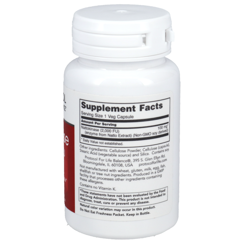 Nattokinase is an enzyme isolated from Natto, a traditional Japanese fermented soy food that has been consumed for thousands of years for its numerous health promoting properties.* More recently, both clinical and non-clinical studies have demonstrated that Nattokinase can promote heart and circulatory health by helping to maintain normal blood fluidity.* Each serving of Protocol For Life Balance® Non-GMO Nattokinase has 2,000 FU (Fibrinolytic Units) for the maintenance of proper blood flow.*