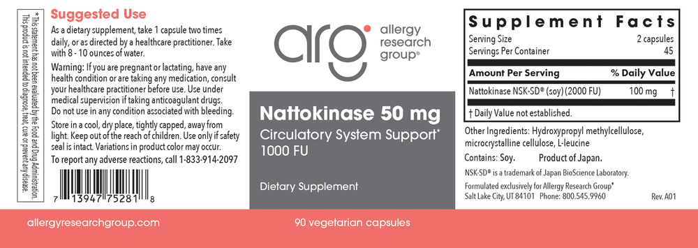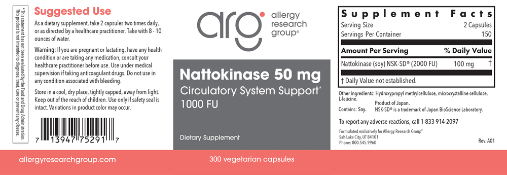 Isolated, purified and encapsulated nattokinase, an enzyme derived from boiled soybeans and a selected, patented strain of Bacillus subtilis natto. Nattokinase NSK-SD® was the first nattokinase introduced into the US market, and it has established standardization and quality levels for all nattokinase, with comprehensive safety studies and proven potency. It is vegetarian, non-irradiated, and free of vitamin K2. NSK-SD® has two Japanese and three U.S. patents, and is recognized by the JHFA (Japan Health and Nutrition Food Authorization) and JNKA (Japan Nattokinase Association) as authentic nattokinase. NSK-SD® is a trademark of Japan BioScience Laboratory.