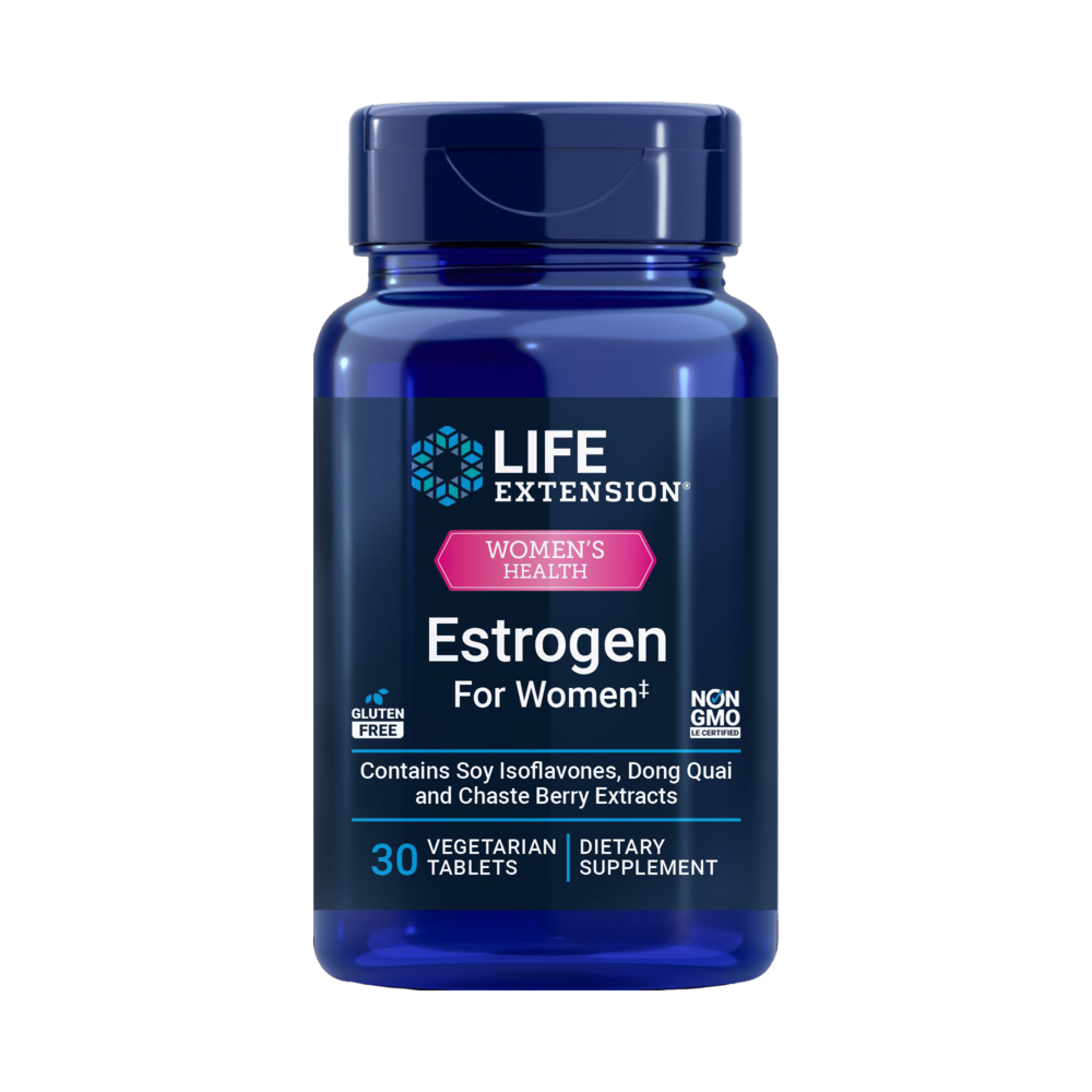 Estrogen for Women is a plant-based formula designed to support against menopausal discomforts and support healthy estrogen metabolism. It delivers soy isoflavones and potent botanicals such as concentrated hops extract, broccoli, licorice and chasteberry extracts, dong quai and more, all in just a single tablet.