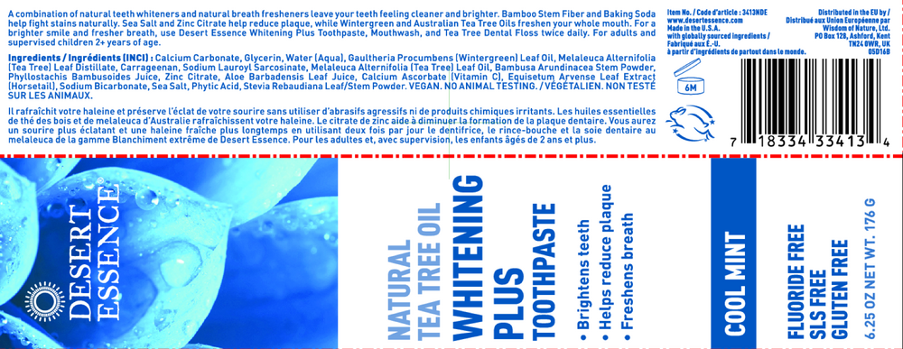 Whitening, fluoride-free tea tree oil toothpaste formulated with pure Australian Tea Tree Oil, Bamboo Stem Fiber and Baking Soda. Keep your mouth healthy and your smile bright while freshening breath with cool Wintergreen Mint.