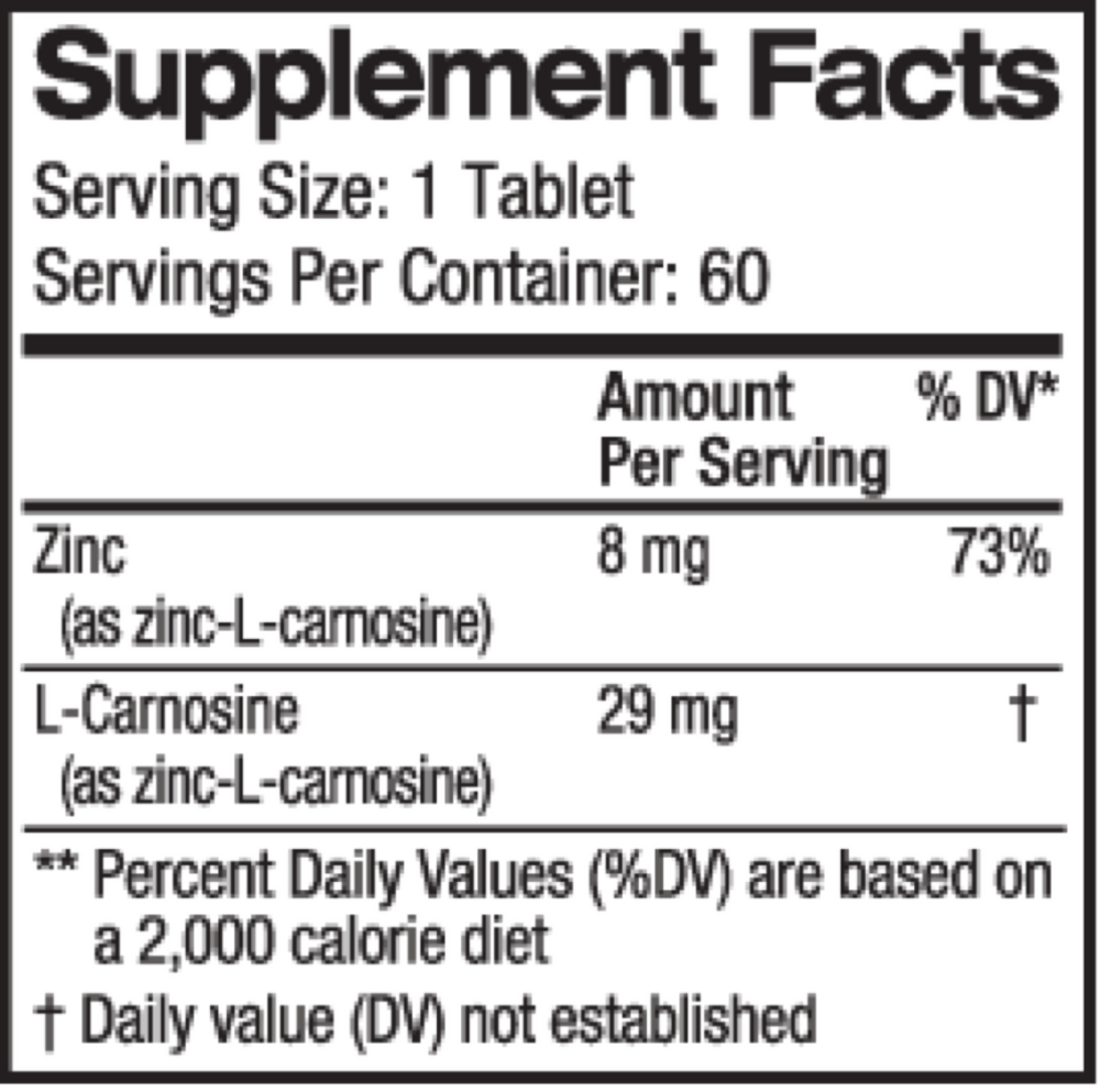 Nature’s Lining contains Zinc L-Carnosine which was developed in Japan in the early 1990’s. L-Carnosine is a di-peptide composed of the two essential amino acids: ß-alanine and L-histidine. L-Carnosine is naturally present in our bodies in muscle and connective tissue. Zinc is an essential trace mineral element that plays a key role in numerous physiological reactions. When L-Carnosine is complexed with zinc, it offers unique properties in the supporting and strengthening of the stomach lining.*