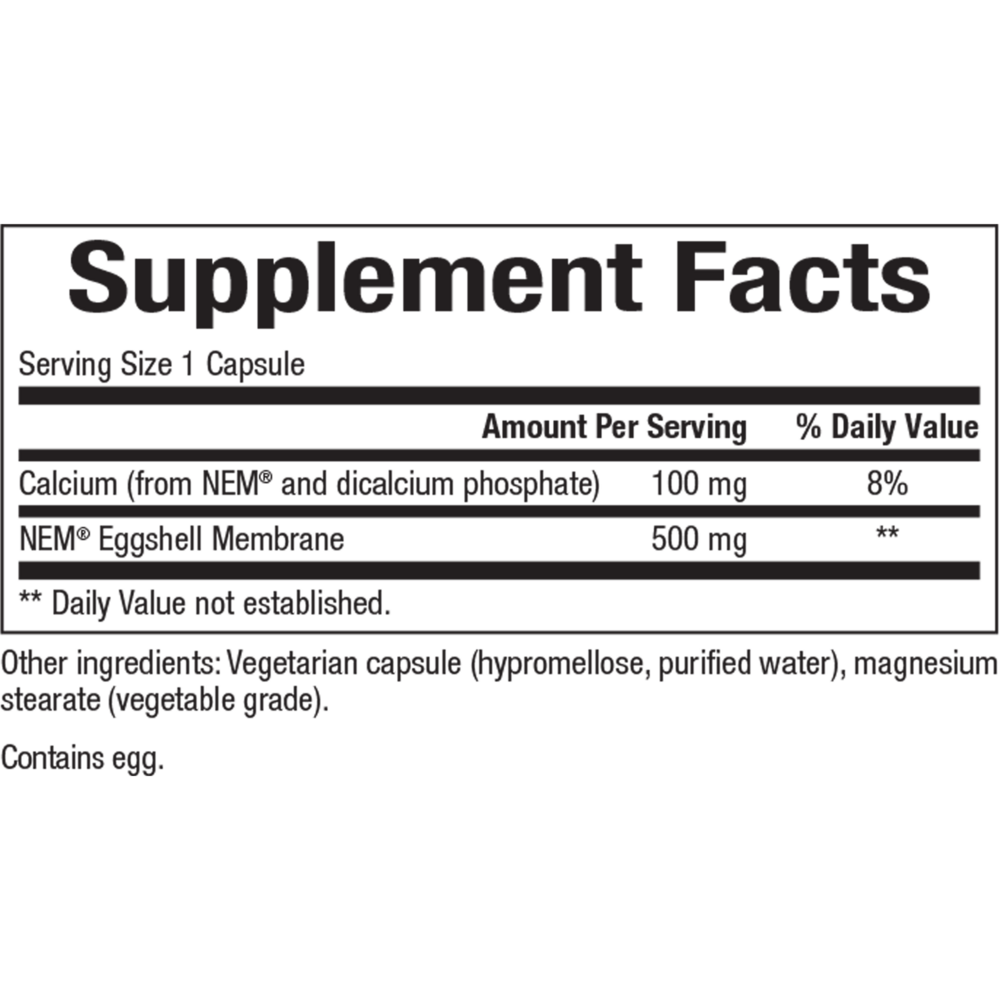 NEM is comprised of (shell-free) eggshell membranes, a natural source of the glycosaminoglycans found in cartilage, including dermatan sulfate and chondroitin sulfate, hexosamines such as glucosamine, as well as hyaluronic acid and collagen type I.