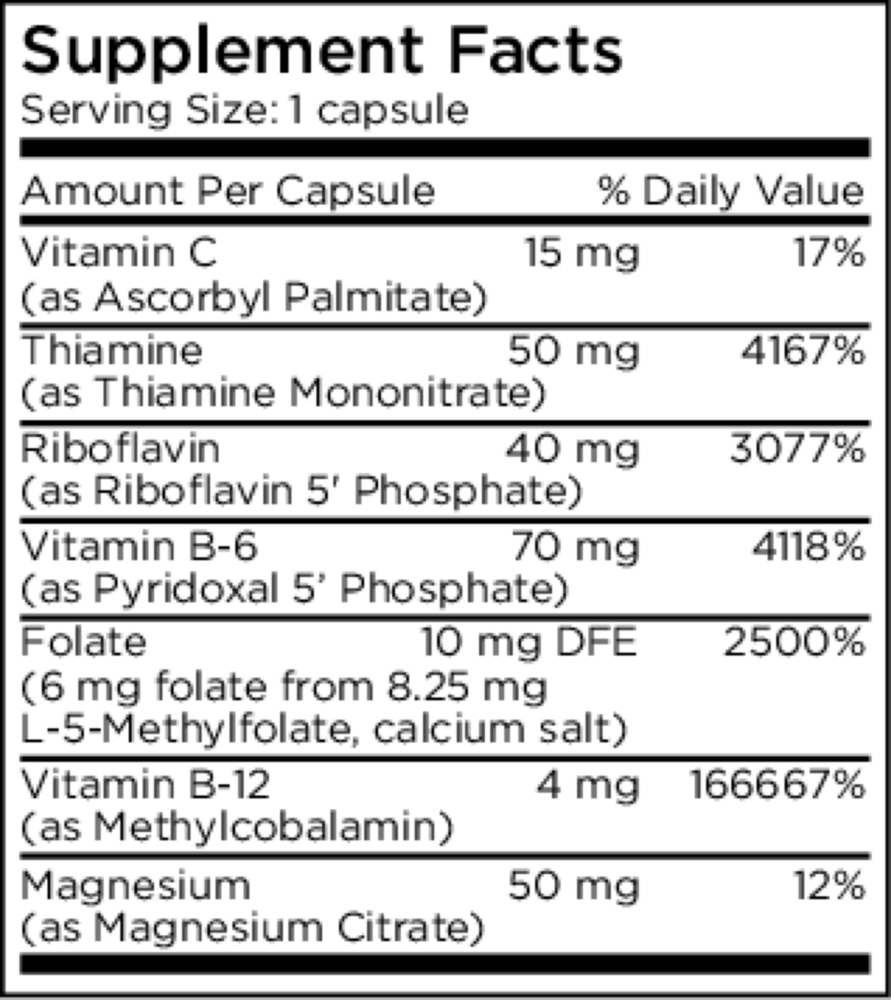 • Delivers bioactive forms of B vitamins, including L-methylfolate