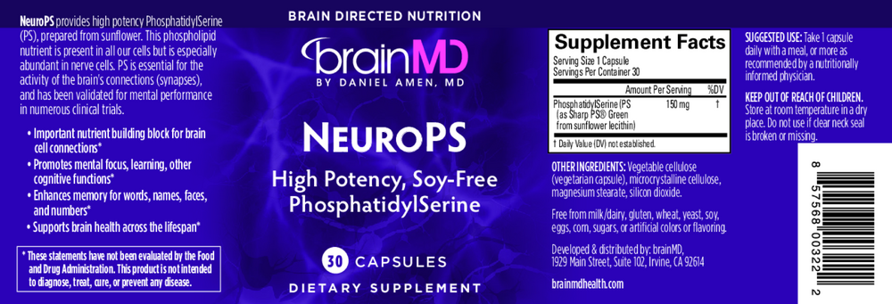 NeuroPS provides high potency PhosphatidylSerine (PS), prepared from sunflower. This phospholipid nutrient is present in all our cells but is especially abundant in nerve cells. PS is essential for the activity of the brain's connections (synapses), and has been validated for mental performance in numerous clinical trials.• Important nutrient building block for brain cell connections*