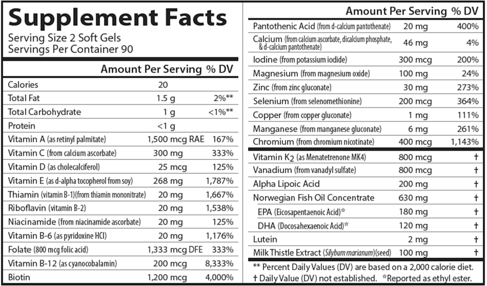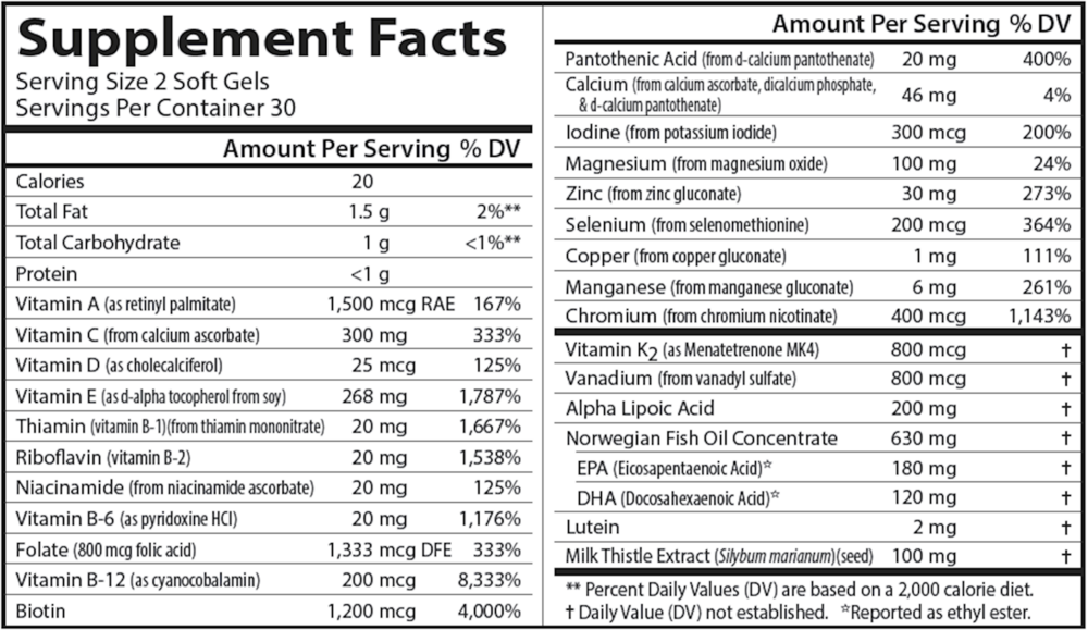 • Provides 13 vitamins, nine minerals, and seven other nutrients
