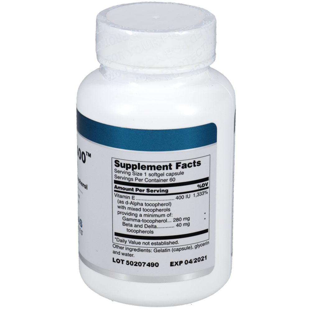 Vitamin E mixed tocopherols with 280 mg Gamma-tocopherolNutri-E 400™ Forte contains 400 IU of 100% natural, unesterified vitamin E (d-alpha-tocopherol), as well as a guaranteed minimum of the d-beta, d-gamma and d-delta tocopherols, which is unique among most mixed tocopherol products available.