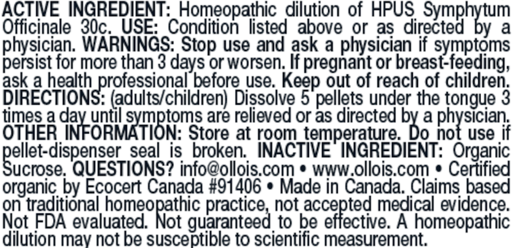 Homeopathic. Ollois organic certified and lactose free Symphytum Officinale 30C is traditionally used for: bone trauma.†