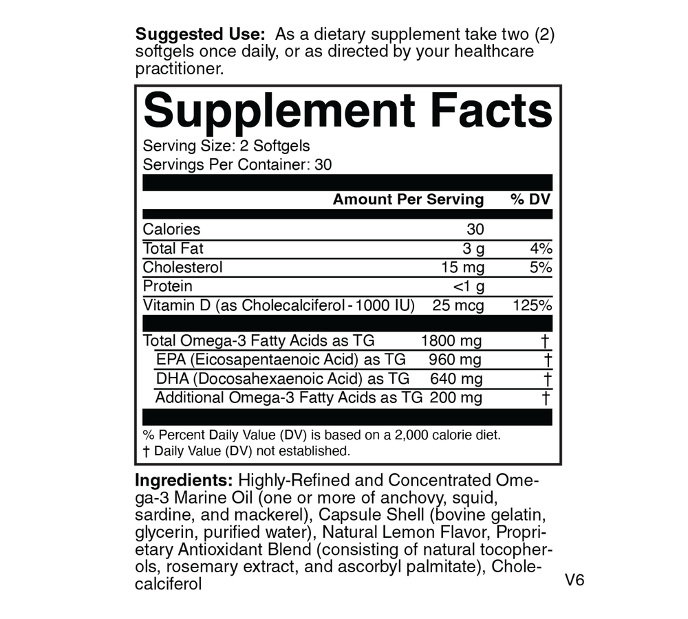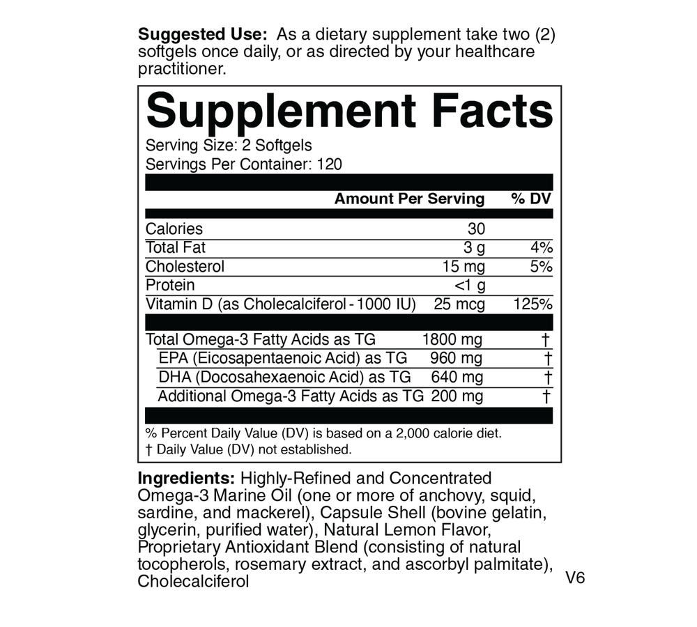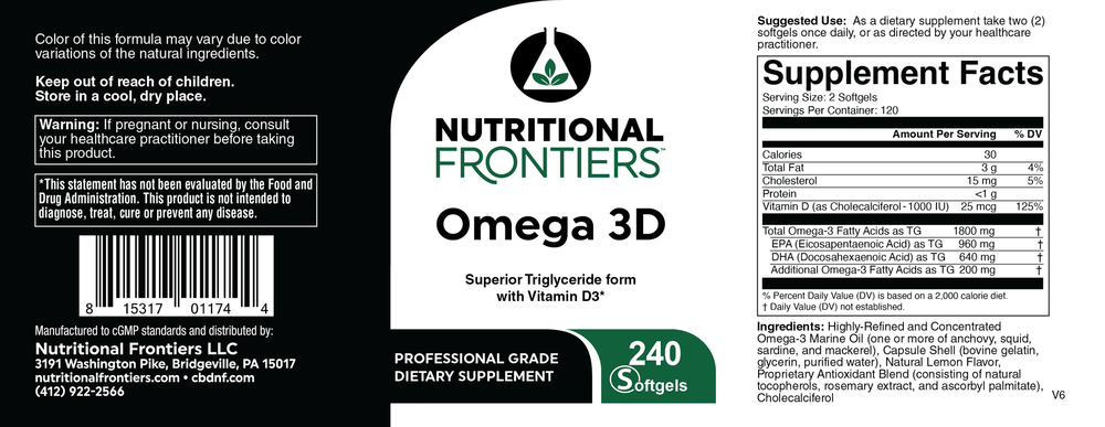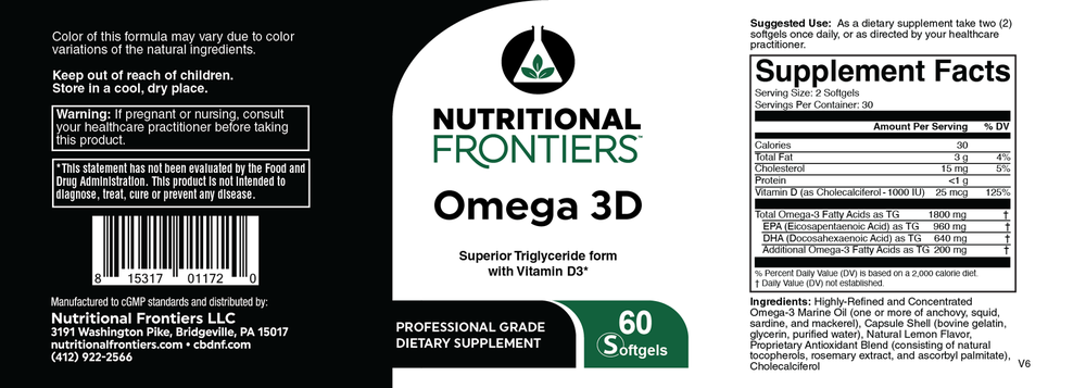 OMEGA 3D is a blend of non- GMO natural oils from Fish that combines the health benefits of Omega 3 and Vitamin D3. It is a comprehensive “multi” fatty acid supplement that is rich in EPA, DHA and Vitamin D3.