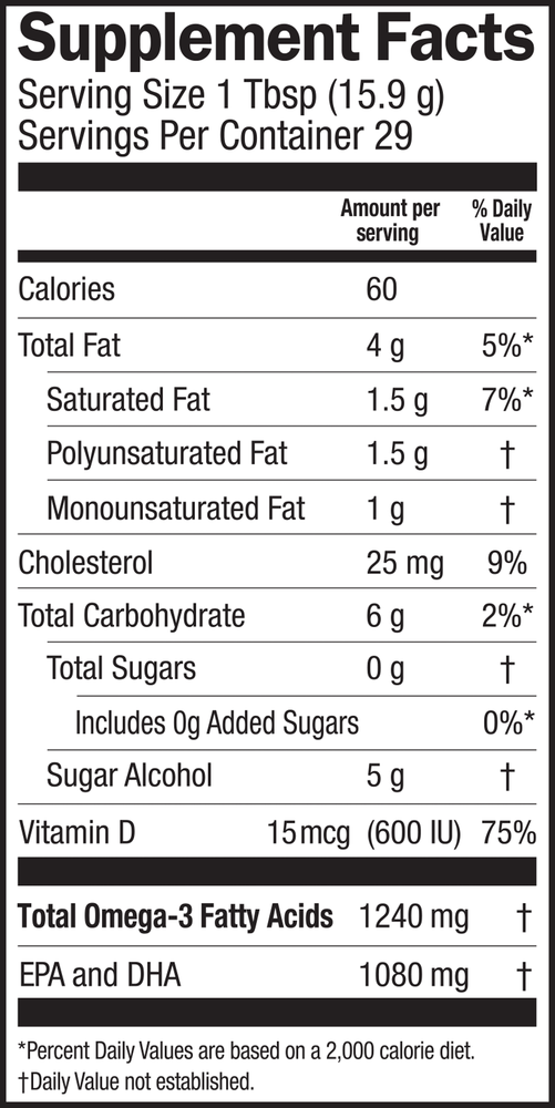 • 720mg of EPA/DHA + 400 IU of Vitamin D per serving