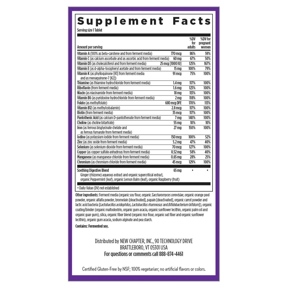 Other ingredients: Ferment media (organic soy flour, organic Saccharomyces cerevisiae, organic orange peel powder, organic alfalfa powder, bromelain [deactivated], papain [deactivated], organic carrot powder, lactic acid bacteria [Lactobacillus acidophilus, Lactobacillus rhamnosus, Bifidobacterium bifidum], organic safflower oil), organic maltodextrin, hydrated silica; Less than 2% of: organic coating (organic maltodextrin, organic sunflower lecithin, organic palm oil, organic guar gum).