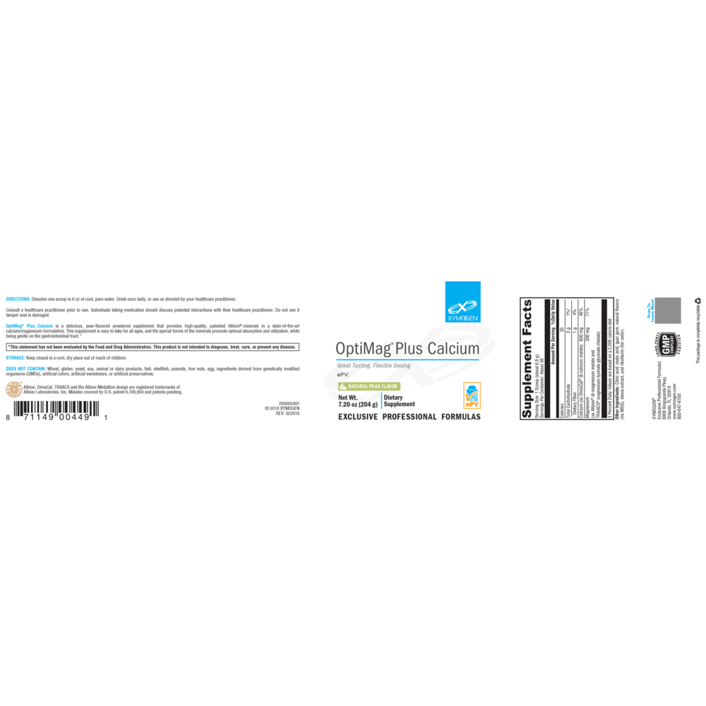 OptiMag® Plus Calcium is a delicious, pear-flavored powdered supplement that provides high-quality, patented Albion® minerals in a state-of-the-art calcium/magnesium formulation. This supplement is easy to take for all ages, and the special forms of the minerals promote optimal absorption and utilization, while being gentle on the gastrointestinal tract.*
