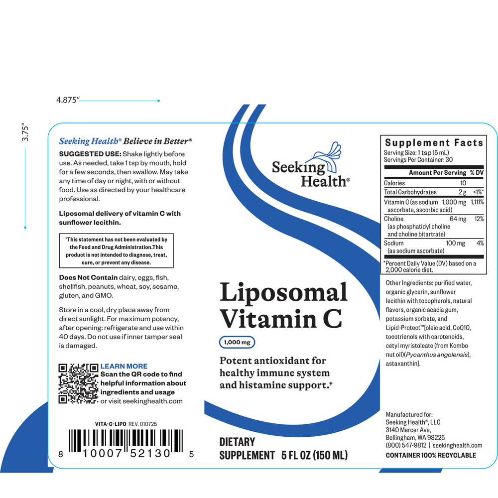 Optimal Liposomal Vitamin C by Seeking Health provides 1000 mg of vitamin C (as sodium ascorbate and ascorbic acid) in a great-tasting liposomal liquid form. Vitamin C is needed by the body to support the immune system, connective tissue and skin, and to recycle glutathione. In the body, as an antioxidant, Vitamin C may help to protect cells from damage caused by free radicals. Environmental exposures to free radicals occur every day. Free radicals are also produced as the byproducts of normal metabolic processes. The body also needs vitamin C to make collagen, a protein required for healthy skin and normal wound healing processes.*