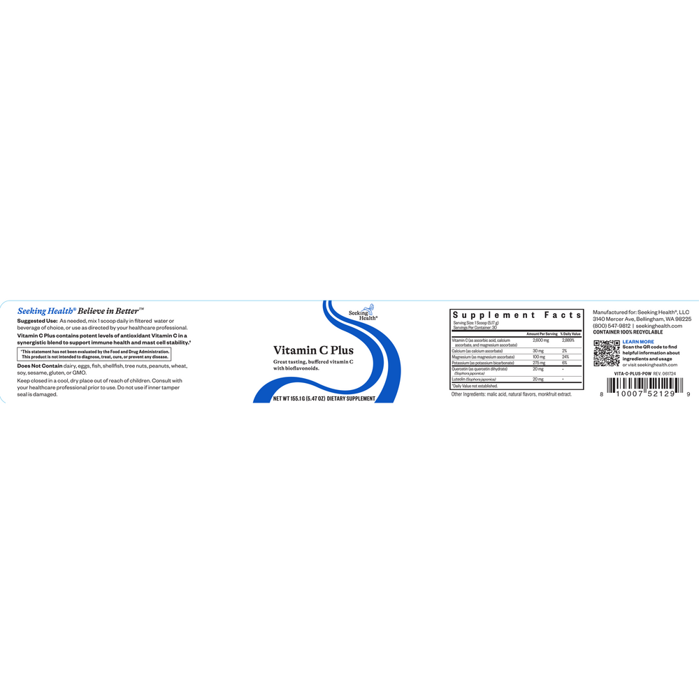 Vitamin C Plus powder contains a potent serving of buffered vitamin C. Plant bioflavonoids are included to support vitamin C utilization.†
