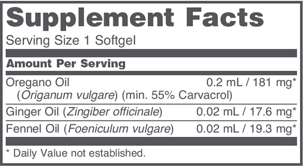 Oregano (Origanum vulgare) is a perennial herb with a long history of traditional use. Oregano oil possesses powerful, free radical-neutralizing compounds, some of which support healthy, normal immune system responses.* Modern studies indicate that oregano oil may also help maintain healthy intestinal flora balance.* Protocol for Life Balance® Oregano Oil Softgels are standardized to ensure a minimum of 55% carvacrol, one of oregano’s active constituents, and are enteric coated for release in the small intestine.