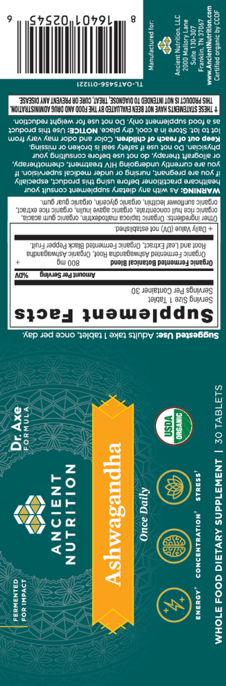• USDA Certified Organic Ashwagandha, in 1 convenient daily tablet