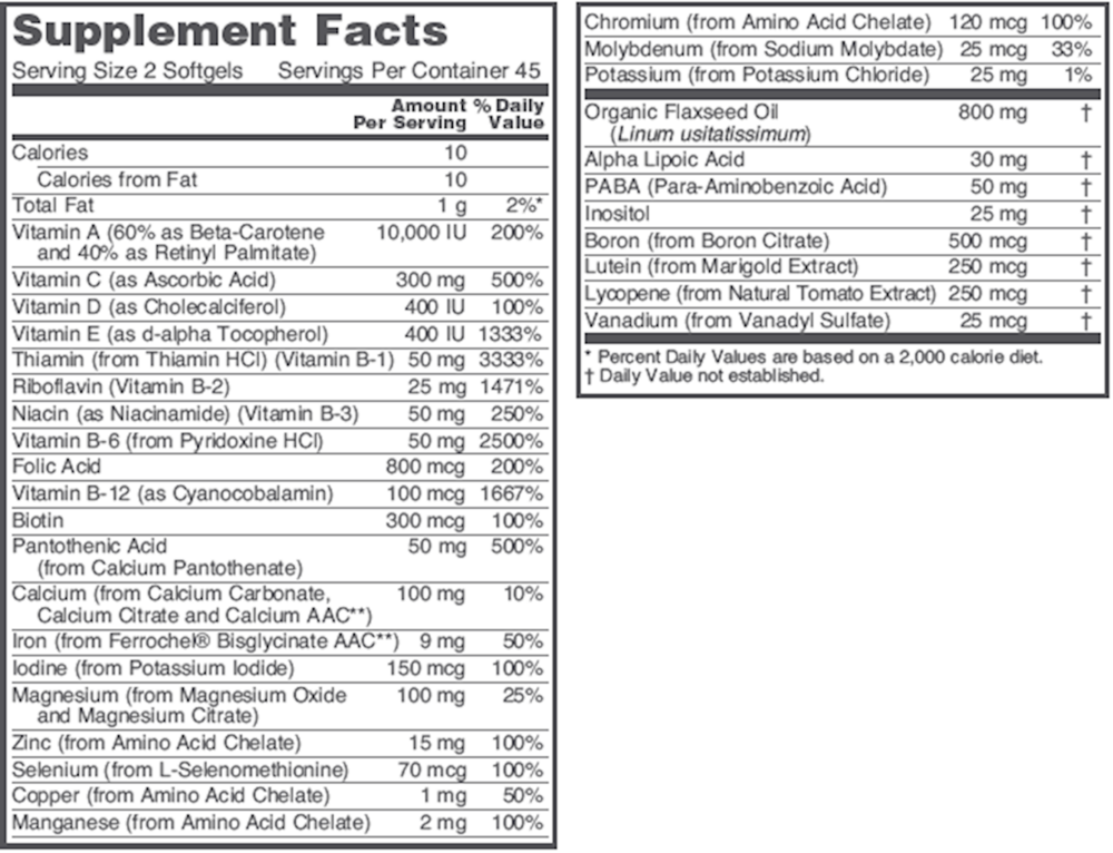 Other Ingredients: Softgel Capsule (gelatin, glycerin, water, carob) Soy Lecithin, Beeswax, Carob and Natural Vanilla Extract.