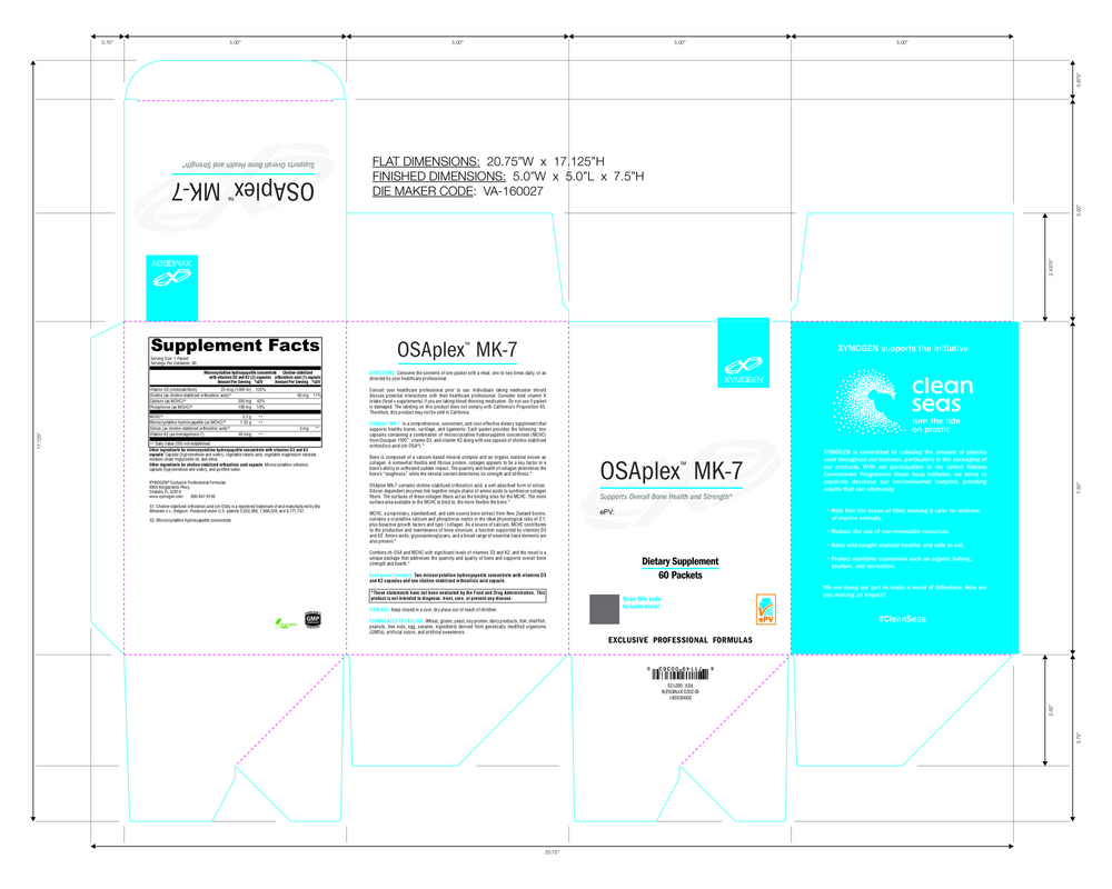 OSAplex™ MK-7 is a comprehensive, convenient, and cost-effective dietary supplement that supports healthy bones, cartilage, and ligaments. Each packet provides the following: two capsules containing a combination of microcrystalline hydroxyapatite concentrate (MCHC) from Ossopan 1100™, vitamin D3, and vitamin K2 along with one capsule of choline-stabilized orthosilicic acid (ch-OSA®‡).†