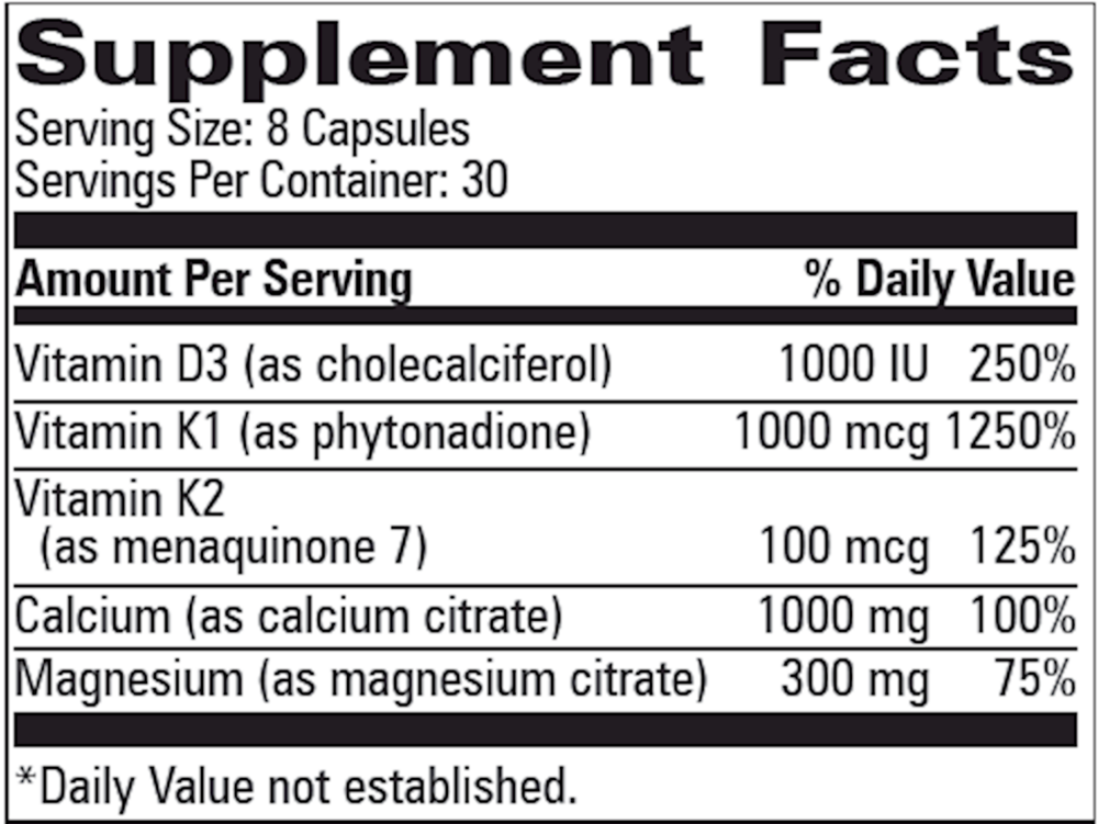 Osteo-Mins PM with D+K1, K2 uses both vitamin K1 and K2. Vitamin K is necessary for the synthesis of osteocalcin, the protein in bone tissue upon which calcium crystallizes. However, patients taking medications to prevent blood clotting must carefully monitor their intake of vitamin K. Bioavailable calcium is essential for bone health; however, bone is complex living tissue that, like other body tissues, has a wide range of nutritional needs. The Osteo-Mins™ formulas were developed and formulated by Jonathan V. Wright, M.D., author of Nutrition and Healing. In addition to calcium these formulas supply strontium, boron, silicon and other vitamins and trace minerals shown by research to support bone growth.* The Osteo-Mins AM formula containing strontium, zinc, selenium, copper, manganese, molybdenum, boron and silicon is taken in the morning. The Osteo-Mins PM formula containing calcium, magnesium, vitamin D (or vitamins D and K) are taken at bedtime.